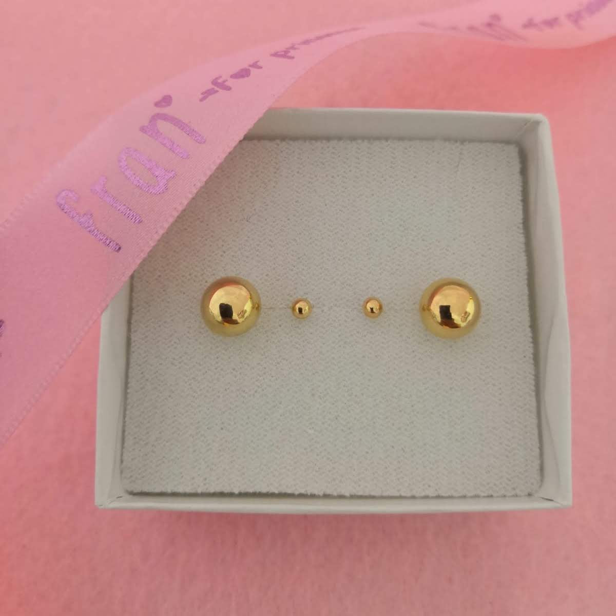 Juego de aretes para mamá e hija en oro de 10k, modelo tradicional en forma de bola con un acabado brillante.