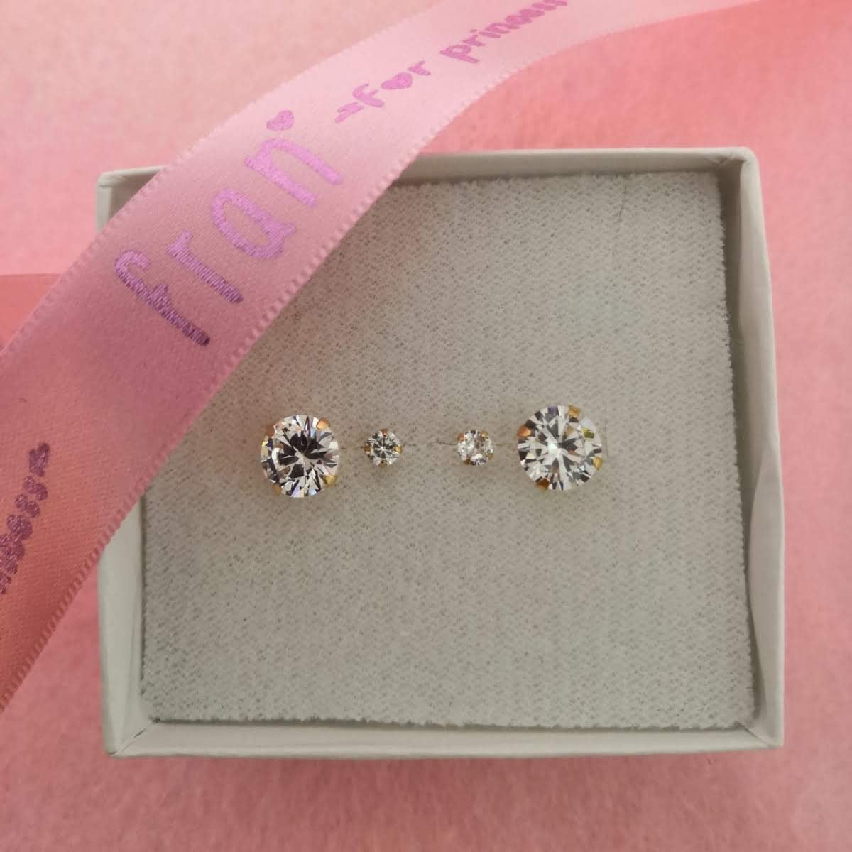 Nuestros aretes para princesas recién nacidas tienen diseño de poste tipo alfiler para perforar la pequeña oreja de tu bebé.